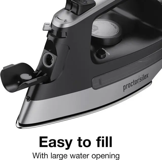 EASY TO FILL: This durable heavy duty steam iron with retractable cord has a large water opening that' s easy to fill.