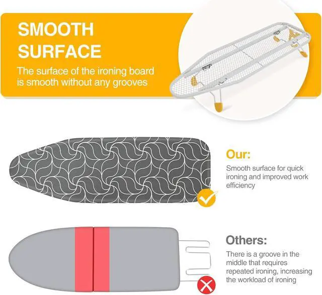 Smooth & Efficient Ironing The compact iron board small features a flawlessly sleek surface that lets your iron glide effortlessly across garments, cutting down ironing time while boosting efficiency. This table top ironing board is an ideal for daily garment care, and keep your wardrobe crisp.
