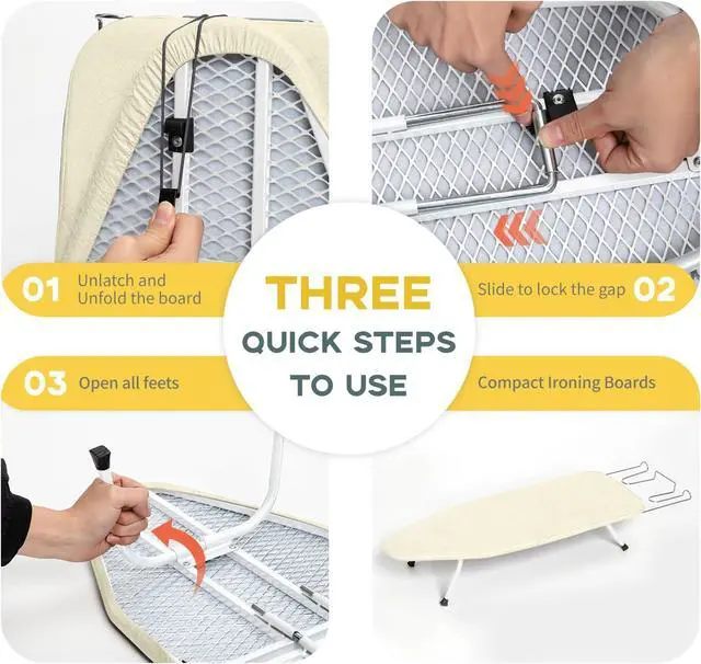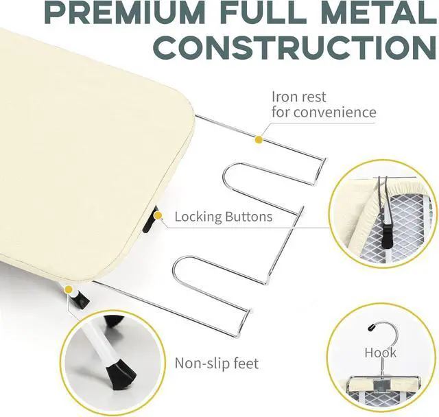 Sturdy and Stable: The well made metal frame is sturdy and durable with a non-slip silicone cap, and the solid structure ensures that the compact ironing board tabletop is stable enough
