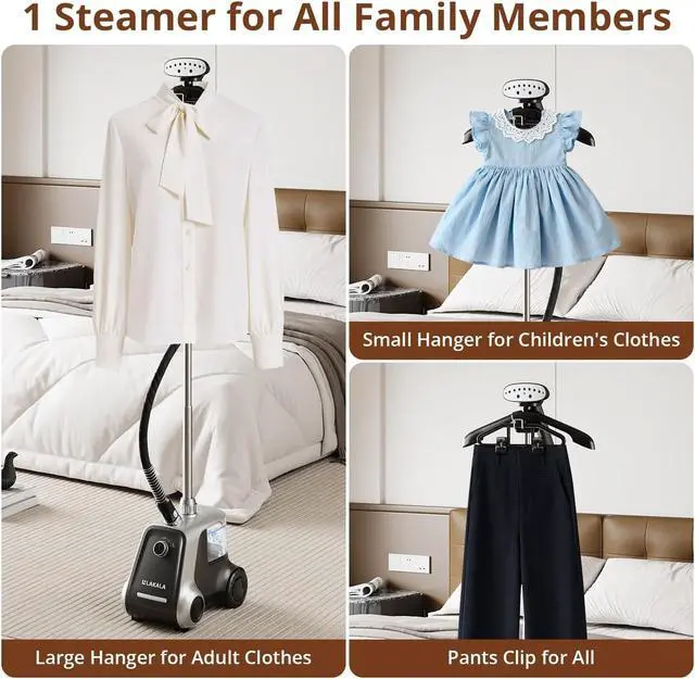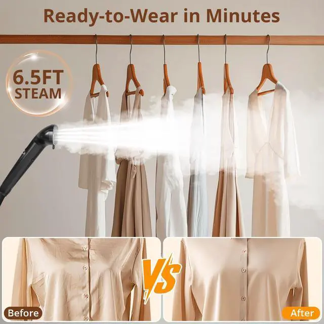 Dual-Mode Flexibility: Floor Stand & Handheld Enjoy the ultimate convenience. Use it as a full-size floor-standing steamer for a full wardrobe refresh, or easily detach the powerful handheld unit for quick touch-ups on hanging clothes, making it the only steamer you' ll ever need.