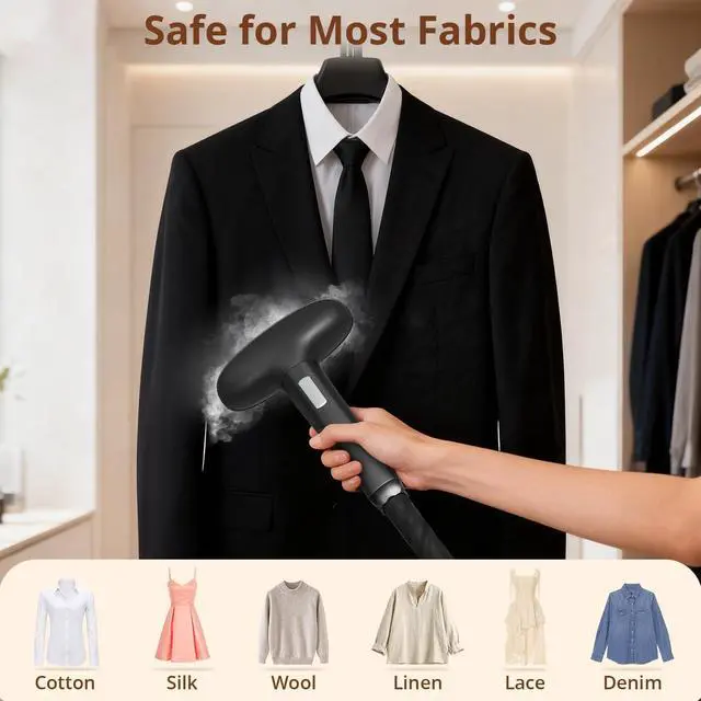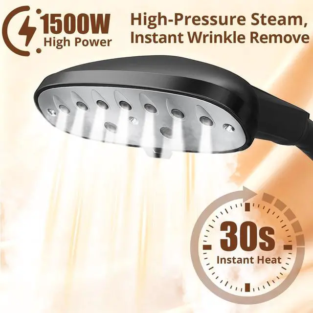 Powerful 1500W & 30-Second Quick Heat-UpGet ready to steam in just half a minute! The robust 1500W heating system quickly reaches optimal temperature, delivering a powerful, penetrating steam flow that erases stubborn wrinkles from denim and linen while being gentle on delicate fabrics like silk.