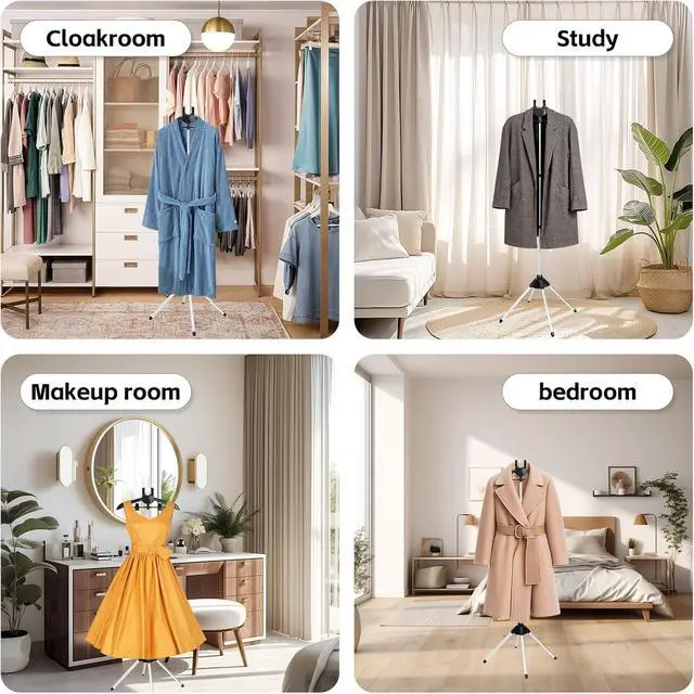 360° Rotating hangerThe steamer rack can be rotated 360°making it easy to iron clothes from different angles, The ironing stand and a stable four-corner base design, this hanger for steaming clothes ensures stable performance.