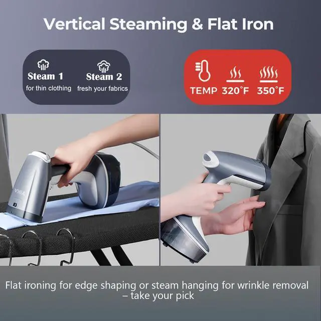 Large Water Tank for Continuous Steaming - The detachable 10.14 oz large water tank provides up to 25 minutes of continuous steaming, allowing you to smooth multiple garments without frequent refills. Perfect for daily home or travel use