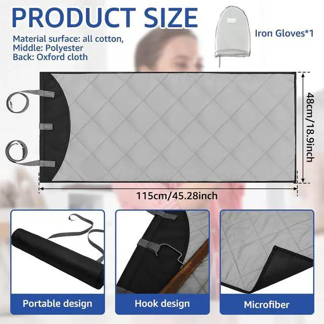 [ & - ] Crafted from a high-quality cotton surface, durable polyester core, and oxford cloth backing, this vertical pressing pad is built to last. Its heat-resistant up to 200°C, ensuring safe and efficient steaming. Plus, the included heat-resistant gloves provide extra protection during use