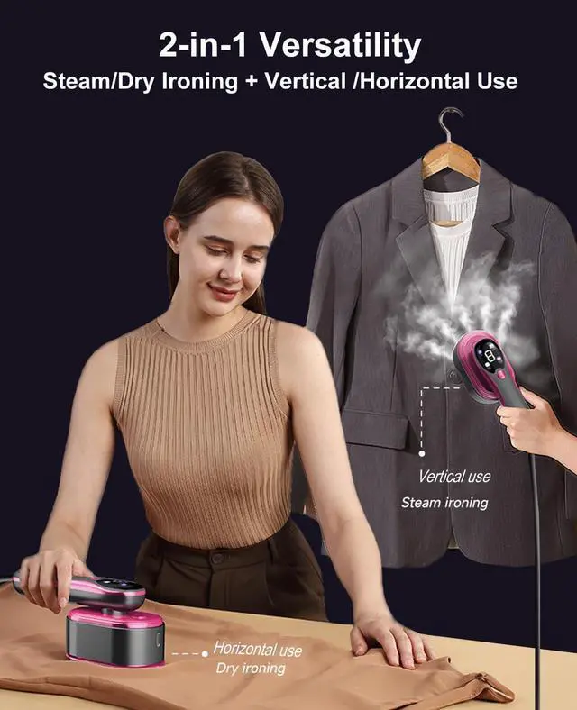 2-in-1 Steaming & Ironing: Wrinkle-Free in Every SceneUse vertically as a garment steamer to effortlessly smooth wrinkles on suit collars and shoulders; switch to horizontal use as a traditional iron to quickly press T-shirts and shirts flat. From curtains and bed sheets to baby clothes, it handles everythingone tool replaces multiple!