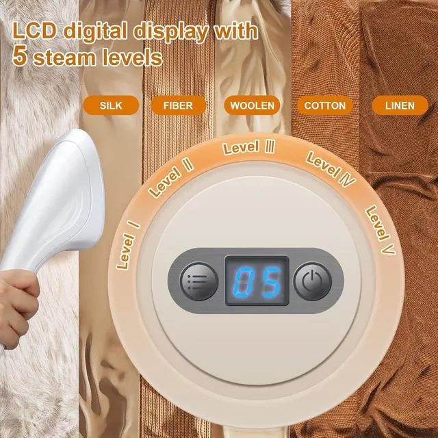 LCD Display & 5 Steam Levels: Precisely control 5 steam levels via the intuitive LCD screen for delicate silks, wool, linen, cotton, or synthetics. The included fabric brush gently refreshes coats, suits, and delicate materials without damage. Perfect for everything from sheer curtains to winter jackets!