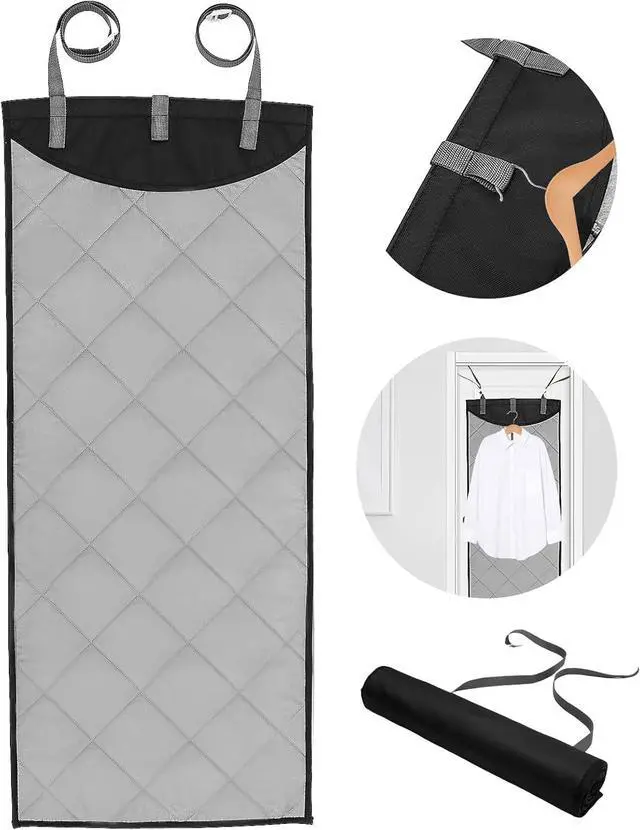 (*^_^*) [Easy to Use] This over the door press pad is easy to use. With 2 straps design that can be easily placed on the top corner of the door to attach the liner and allow the over the door press pad to hang freely. And then place the clothes on a hanger and hang it on the straps. You can steam your clothes on it, making your clothes instantly fresh and wrinkle-free.