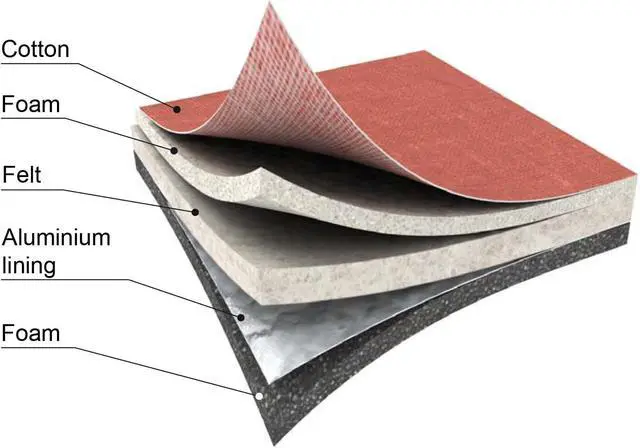 DURABLE: Heavy duty ironing board cover with 5 layer padding and ceramic reflective coating, an inner foam layer and felt under padding and aluminum lining. Cover is scorch, water and stain resistant for long lasting use