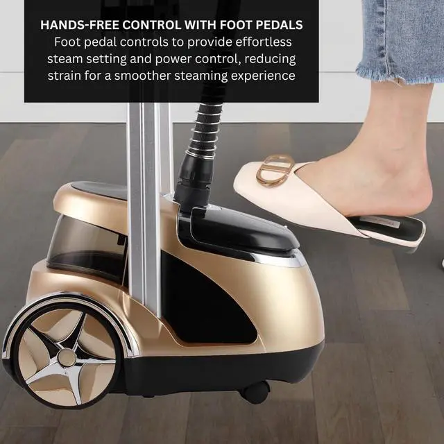 DESIGN - Dual bar support frame, power & steam pedal control, & removable translucent 1.8 liter tank