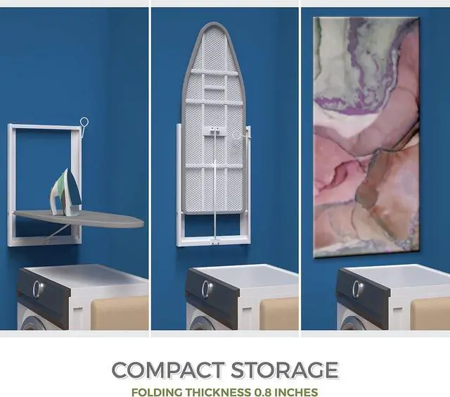 SMALL SPACE FRIENDLY: Never compromise ironing board size for lack of a storage space. The foldable design of the Xabitat wall mount ironing board allows it to be used when needed and folded flush with the wall when not in use. Optimal for dorm rooms, small laundry room and apartments