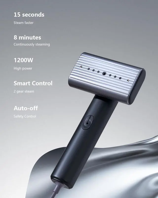 Smart Control with Dual Steam Settings Choose between two steam levels for different fabric types. Smart control system ensures efficient wrinkle removal while protecting delicate clothes. Built-in auto shut-off function activates when after 15 minutes no steaming for safety and peace of mind.
