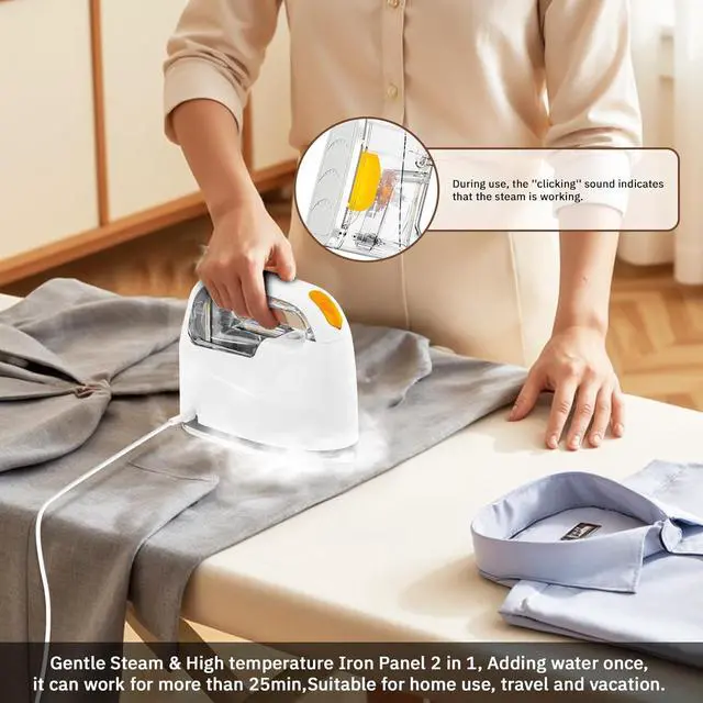 Small Size Large Power: Mini SteamerIron 2 in 1 Power 1000W, 40 seconds fast heating, Enabling the multi steam mode in conjunction with the high-temperature panel can quickly remove stubborn wrinkles on clothes. It is very convenient to use at Hotel stays/Airbnbs, suitcase packing, quick touch-ups, small apartments/dorms, morning wardrobe emergencies, multi-purpose garment care, weddings/special events, job interviews/business meetings and more.