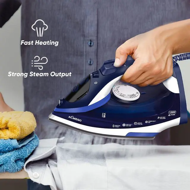SAFE AND RELIABLE: 1200W strong power. Built in auto off and anti drip function, the travel iron will shut off automatically when not in use, that prevents burning clothes, and the sole plate of steamer is leak-proof, and it avoids scalding when you iron clothes.