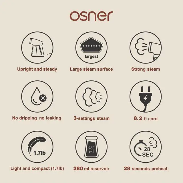 Lightweight and Compact but Powerful: Weighing less than 700 grams (25 oz), this steamer is your best travel mate. Its small size produces powerful and even steam, comparable to a commercial-grade standing steamer. Take Osner on your trip and bring fashion with you. This is the best steamer for clothes. Exclusively on.