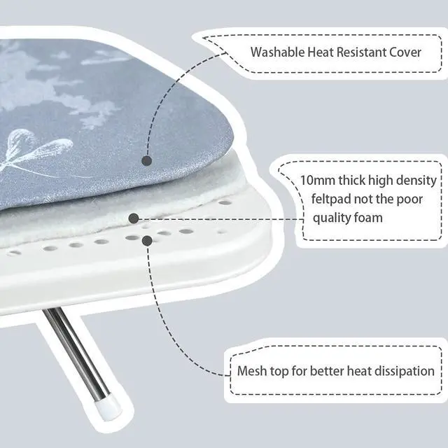 Thicken Felt material padding with heat resistant cover: Thick and special felt material padding enable a smooth ironing job. Better cover material for better ironing experience