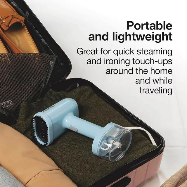 DOUBLES AS AN IRON: The nonstick ironing plate on the front of this handheld heats up quickly to let you press out stubborn wrinkles, crease pants, iron shirts and more.