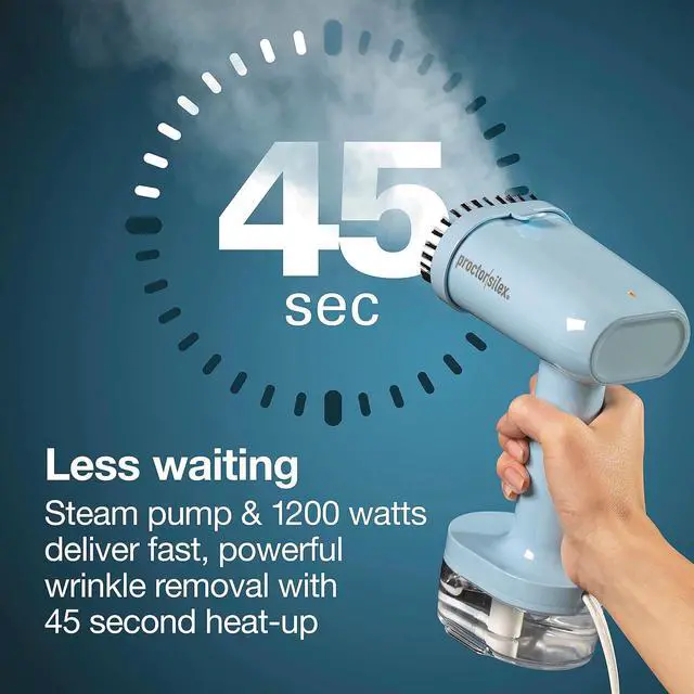 LESS WAITING: Quickly steam an outfit for work or while traveling. The 1200 watts provide fast, powerful wrinkle removal and heat up the steamer in just 45 seconds.