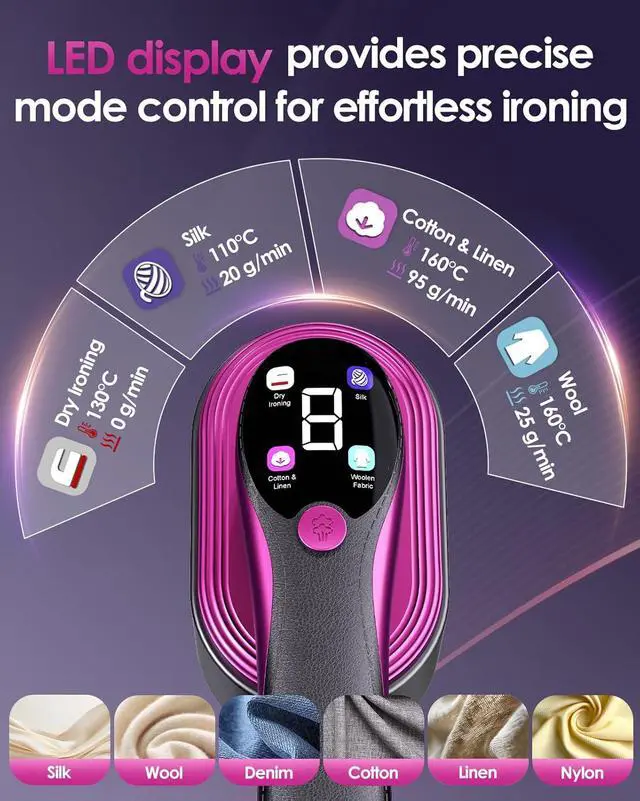 Your Fabric Expert: 4 Smart ModesFour one-touch modes (Dry/Iron, Cotton, Silk, Wool) deliver the right amount of steam for every fabric. Protects delicate materials while tackling tough wrinkles intelligently.