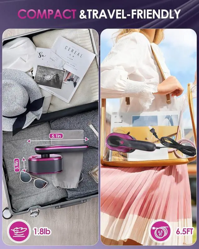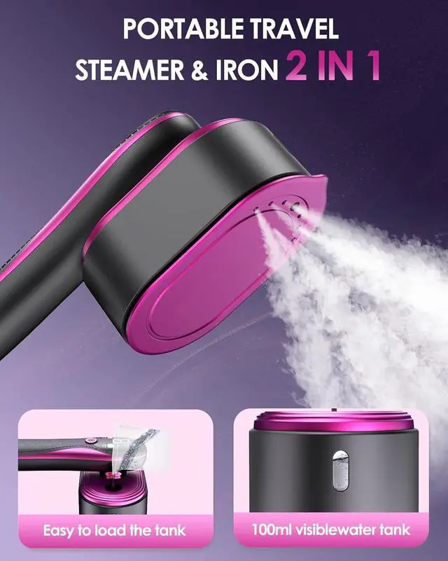 Dual Function: Steam & Iron with Visible Water SupplyEnjoy the flexibility of both a handheld steamer and a traditional iron. The see-through 100ml tank ensures you never run out of steam mid-task.