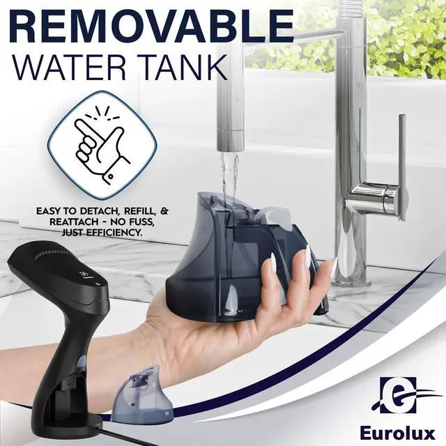 USER-FRIENDLY: The handheld steamer is easy to use with its one-touch power button, simple design, and detachable water tank. INCLUDES a Fabric brush, measuring cup, and travel bag.