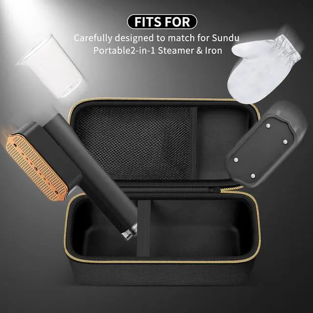 Custom-Made for the Sundu 2-in-1 Steam Iron & SteamerPrecision fit for the Sundu portable steamer & ironswallows the unit, base, power cord, water tank, ironing gloves and every last accessory without a squeeze.