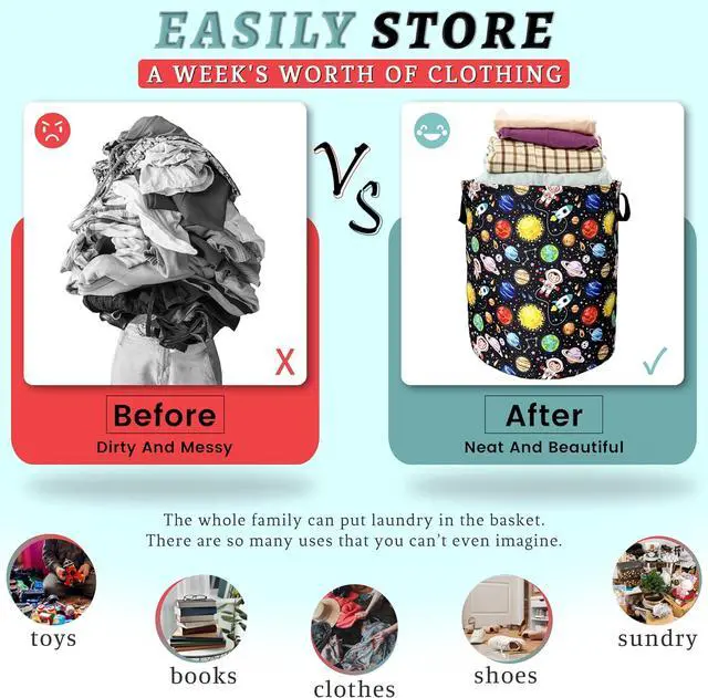 Multipurpose: The laundry basket will be a good assistant in your life. Ideal for playrooms, bathrooms, bedrooms, cloakrooms, kitchens, offices and car cabs to store toys, clothes, office debris and household clutterng