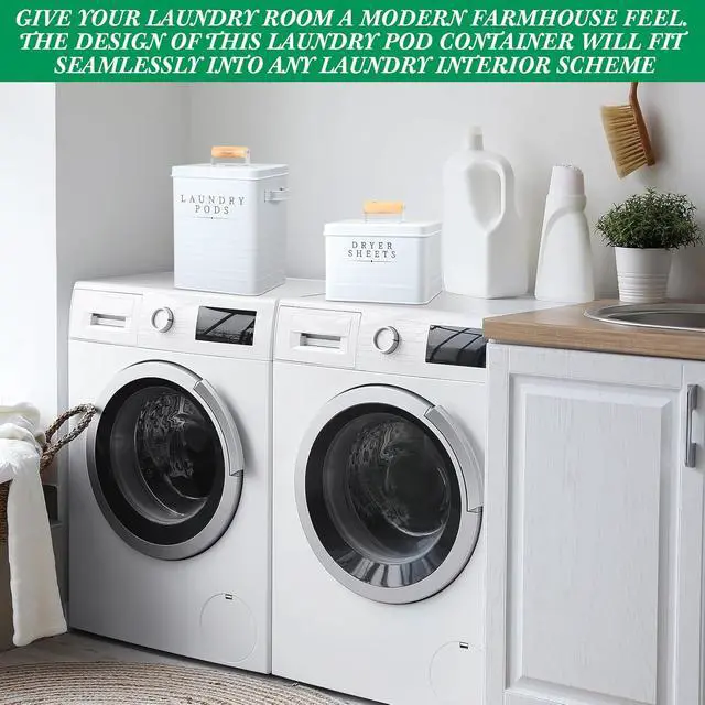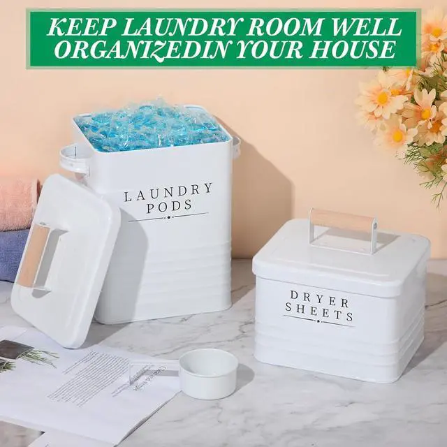 Sufficient Quantity: the package includes 1 laundry pods container and 1 metal dryer sheet holder, providing you with ample laundry storage containers for your laundry essentials while ensuring a neat and organized laundry room