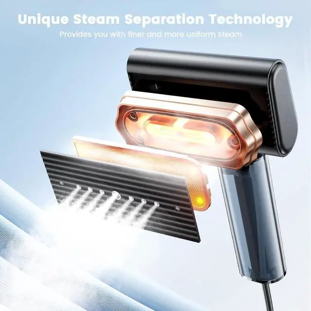 2-in-1 Versatility & Ultimate PortabilityThis isn' t just a handheld steamer. Use it vertically on hanging clothes, horizontally on flat surfaces (like tables for drapes), and dock it securely in its base for storage. Its lightweight and portable, makes it a perfect travel companion and space-saving solution.