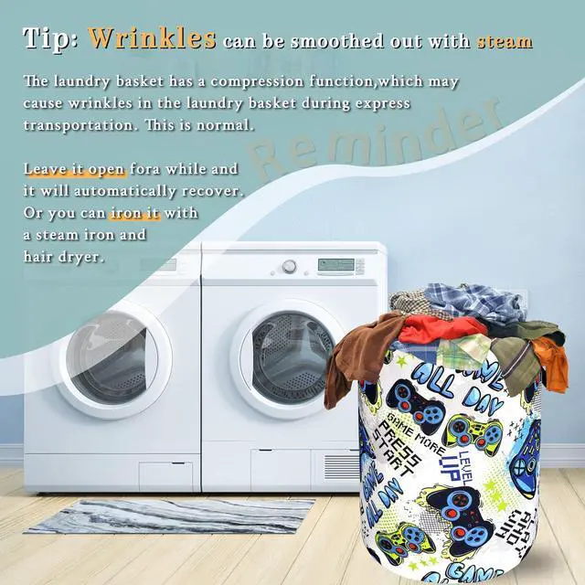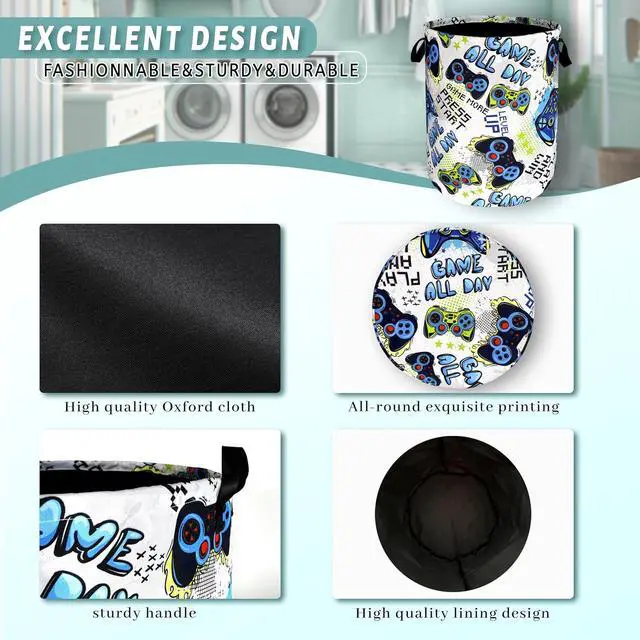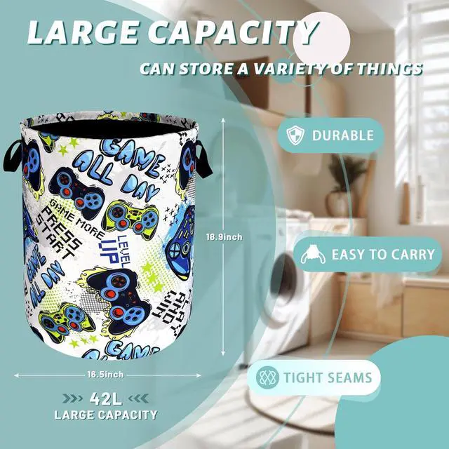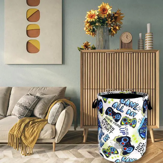 Funny Cool Game Machine Laundry Basket Games Foldable Colorful Laundry Hamper Oxford Cloth Tote Bag Clothes Storage Bucket Toy Organizer 18.9" x 16.5" For Bathroom/Laundry Storage/Bedroom