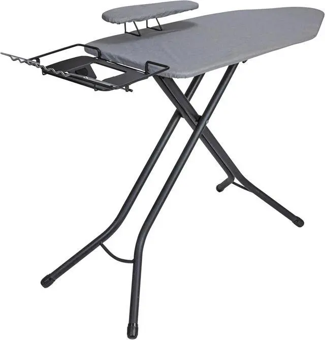 A wonderful investment in your comfort and ironing ease, this ironing board also sports a retractable sleeve board, iron rest and hanger bar.