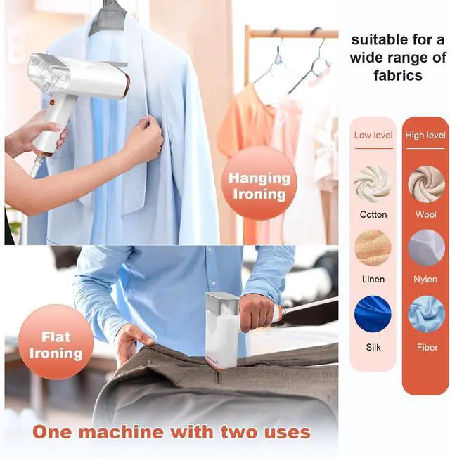 Safety & Easy To Use: The steamer for clothes uses a unique anti-drip technology that supports vertical ironing and horizontal ironing. And transparent water tank design allows you to keep abreast of changes in water volume. Never worry again when you run out of water during steaming. The hand held steamer adopts a one-button operation, even a novice can easily control it.