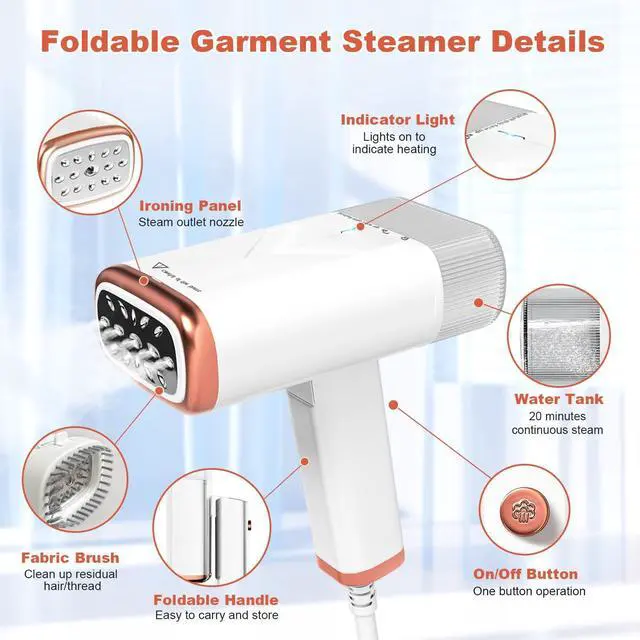 Efficient Wrinkle Removal: Our 1200W handheld steamer only takes 20 seconds to heat up, which can produce a strong and long-lasting steam flow, softening the fibers of clothes and quickly removing wrinkles from clothes. With a large 120ml detachable water tank, the garment steamer can continuously steam iron for 20 minutes, which fully meets your travel or daily needs and saves your ironing time.