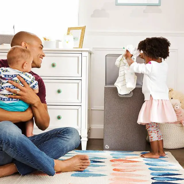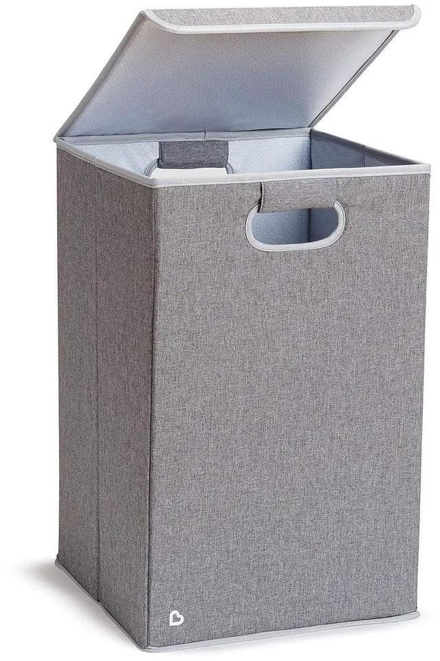 Lightweight, large capacity baby laundry hamper with a folding lid that won' t fall in
