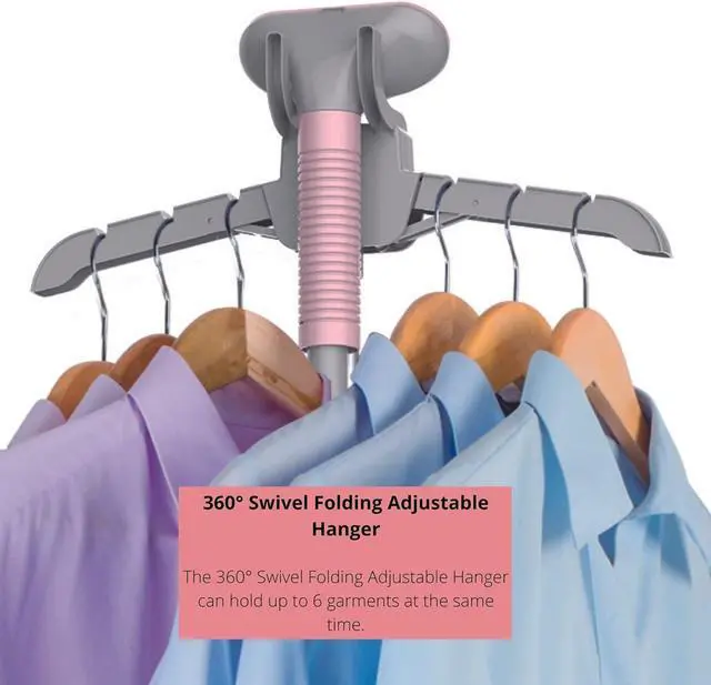 ADJUSTABLE - Patented folding adjustable hanger with 360 degree swivel extends to fit any garment