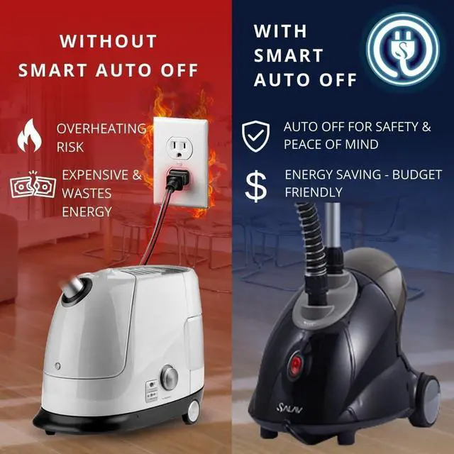 AUTO-OFF SAFETY PROTECTION This standing garment steamer for clothes automatically shuts off when the water level is low or after inactivity, ensuring safe and worry-free operation at home.