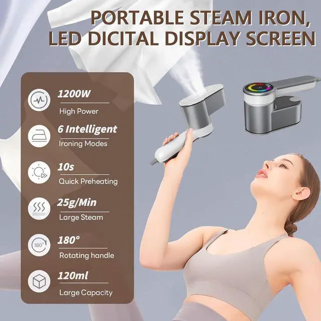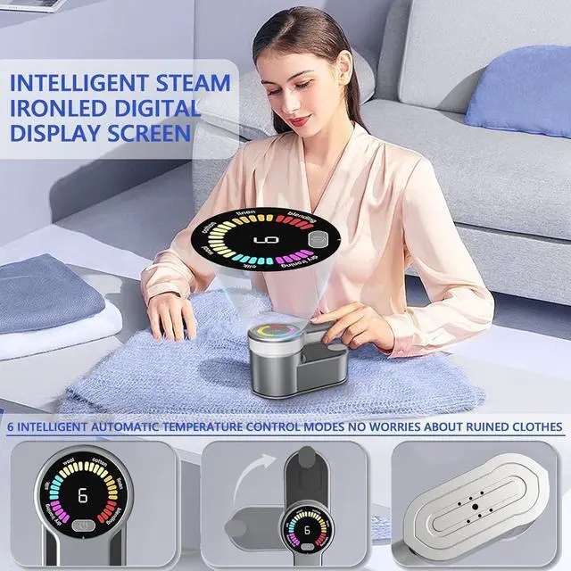 Intelligent Handheld Clothes Steamer 6-in-1 Multi-Mode This handheld garment steamer features 6 adjustable steam modes, making it ideal for all fabric types, from delicate silk, wool, lace, and nylon blends to sturdy cotton and linen. The LED digital display shows the appropriate fabric setting, ensuring precise control. Whether you need a quick touch-up or deep wrinkle removal, this 1200W high-power steamer provides fast and efficient ironing performance.