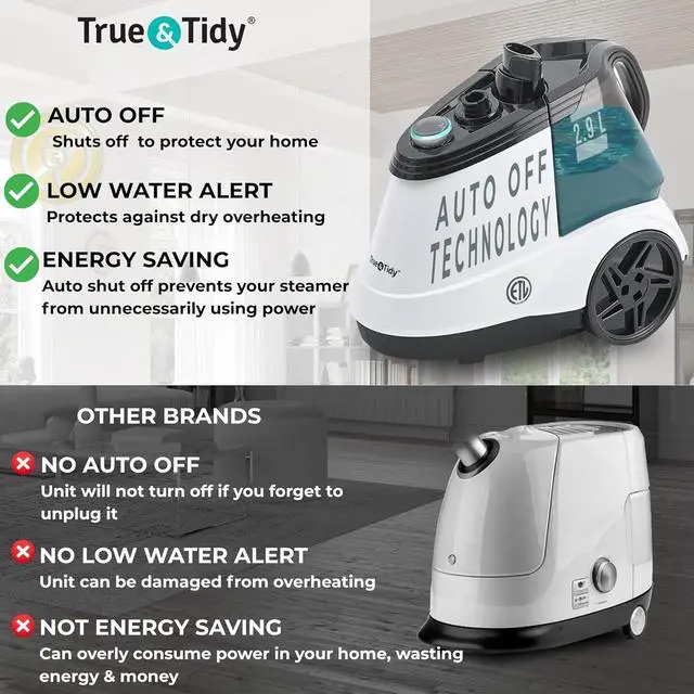 INTELLIGENT AUTO-OFF SAFETY TECHNOLOGY Advanced smart technology powers down the steamer when the water tank is empty, helping prevent hazards and conserve energy.
