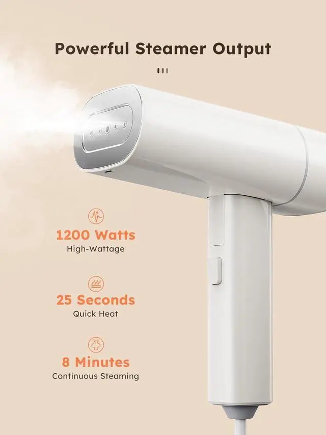 Easy & Powerful Steamer for Clothes: 1200W for a 30-second heat-up and strong steam, removing wrinkles in seconds