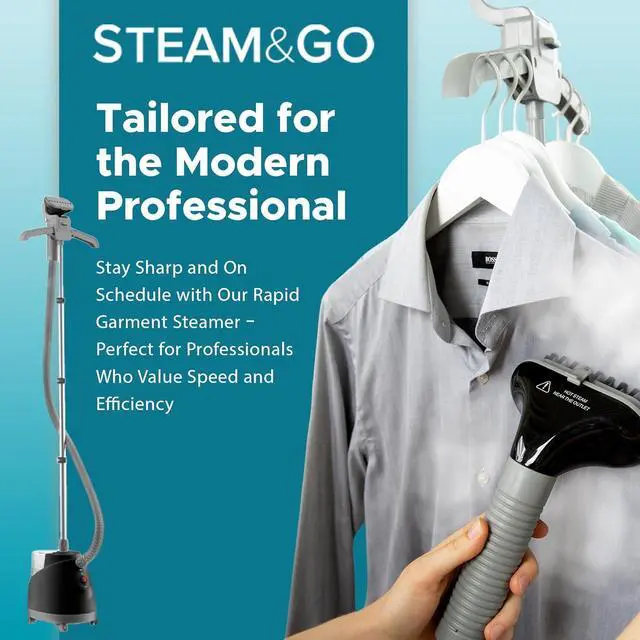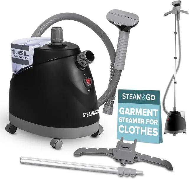 HANDHELD STEAMER & QUICK-HEATING: Keep fabrics wrinkle-free with Steam & Gos Rival Handheld Garment Steamer. This upright standing garment steamer features a quick-heating design, adjustable pole hanger, and modular components for fast, professional-quality results with ease.