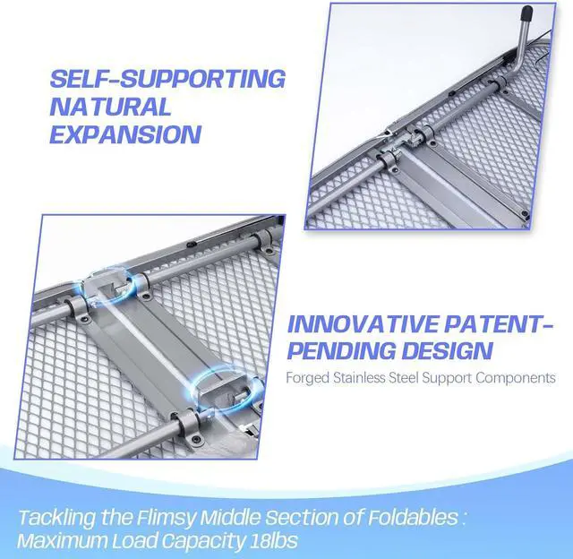 Forged Stainless Steel SupportsThe table top ironing board made reinforced stainless steel frame provides unmatched stability (18 lbs max load) and durability. At 5.2 lbs (35% heavier than similar products), its built to last.
