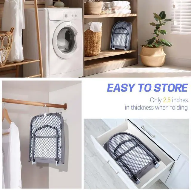 Compact & Portable DesignOur small ironing board tabletop is perfect for small spaces, measuring 32×12×6 inches when open and folding down to just 16×12×2 inches. The included iron holder adds convenience, making it ideal for apartments, dorms, or travel.