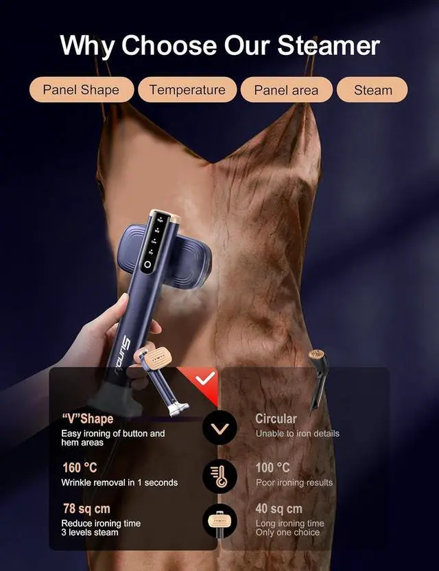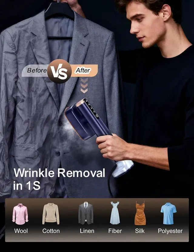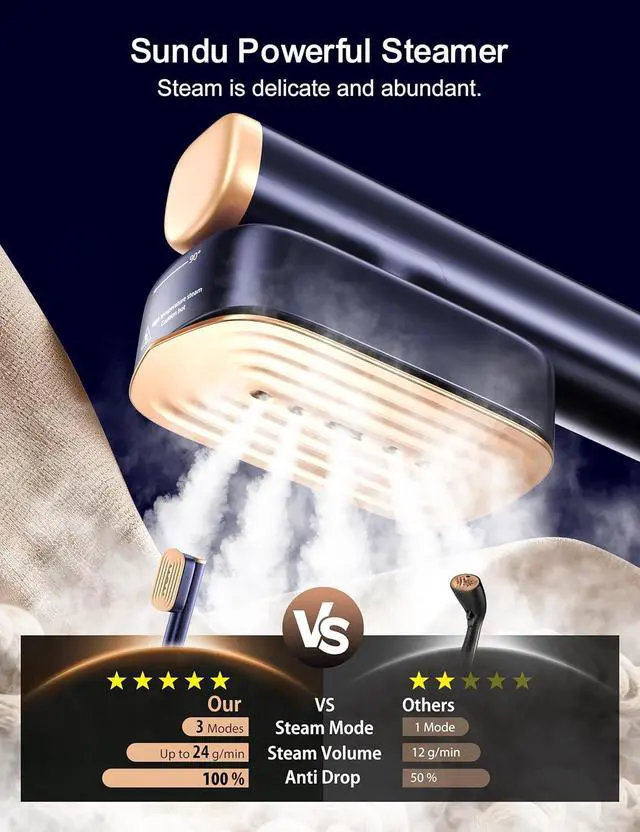 Powerful & Instant Steam: Experience professional-grade wrinkle removal with the Sundu steamers 1200W motor, ready to use in just 15 seconds. It generates intense steam at 24 g/minfree of water dropletsfor deep fabric penetration. Whether its stubborn creases from washing, drying, or ironing, this steamer smooths them away in seconds while keeping clothes dry. Enjoy a freshly pressed look in no time.