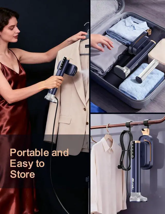Compact & Travel-Ready: Designed for life on the go, this lightweight steamer (with 100 ml tank) measures just 9.5 x 3.2 x 2.7 inches. It includes a hanging hook for space-saving storage and a 2.4 -meter power cord for flexible use. An ideal companion for travel, business, students, or everyday home usestylish, practical, and always ready when you are.
