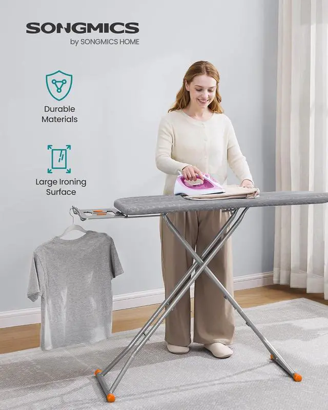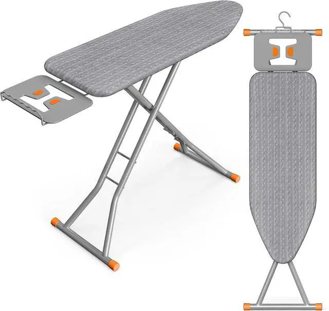Innovative Space-Saving Design: This ironing board features a retractable iron rest that saves space and doubles as a hanging area, letting you iron and hang clothes in one spot for efficient ironing