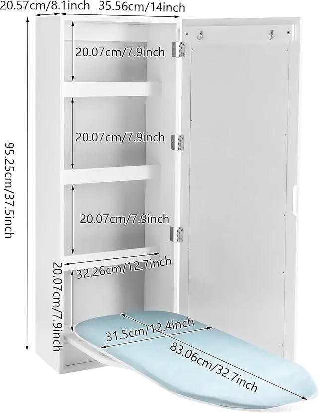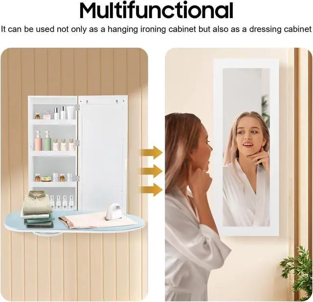 Multifunctional Cabinet: Serves as both an ironing station and dressing cabinet, allowing you to see the effect of wearing clothes directly, saving time and costs