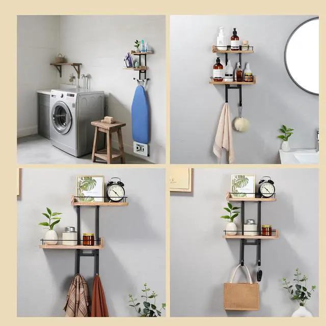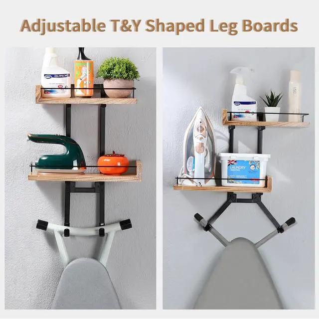 2-Large Shelves Space Saver - Say goodbye to clutter! AIDILI ironing board wall holder stores your ironing board, iron, and supplies in half the space. Adjustable wood shelves create staggered storage for all your items