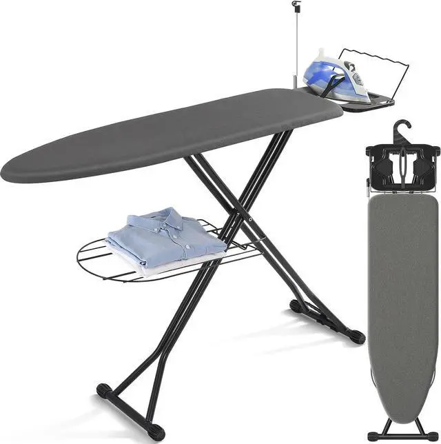 Multifunctional Design: The sturdy iron rest is fitted with three-level adjustable silicone irons harness, and offers options for placing different types of irons. Place dry irons flat and steam irons at an angle to prevent steam from escaping. And it is equipped with a flexible iron cord minder to keep the iron cord up and out of the way