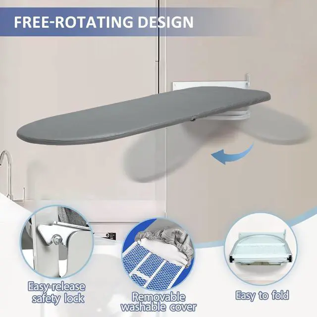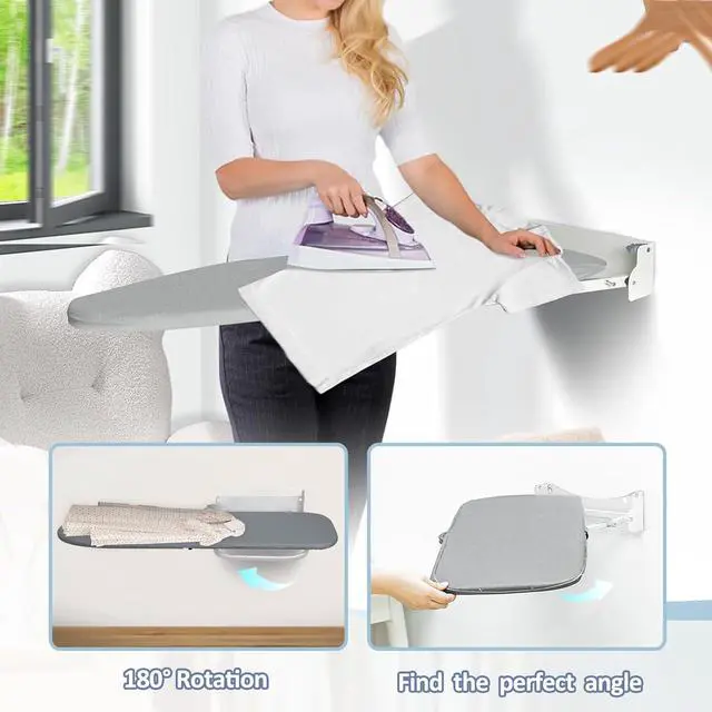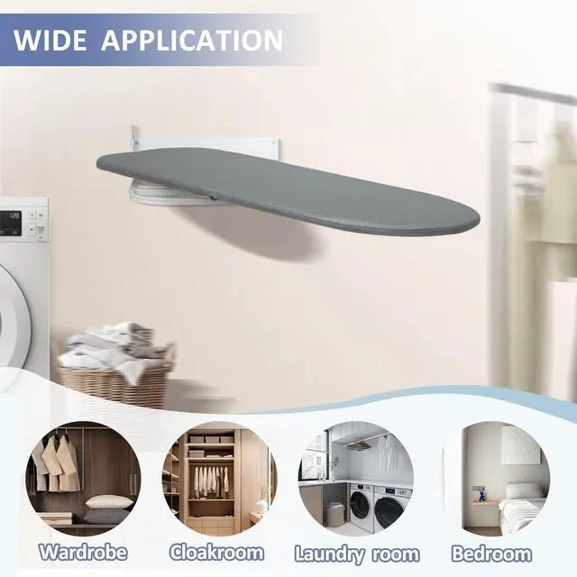 Space-saving: Designed to be mounted on the wall, our foldable ironing board is perfect for small apartments, tight laundry rooms, and cramped RVs. Easily fold it up and down as needed to iron your clothes without taking up valuable floor space. Say goodbye to clutter and hello to convenience with our compact and stylish wall-mounted ironing board