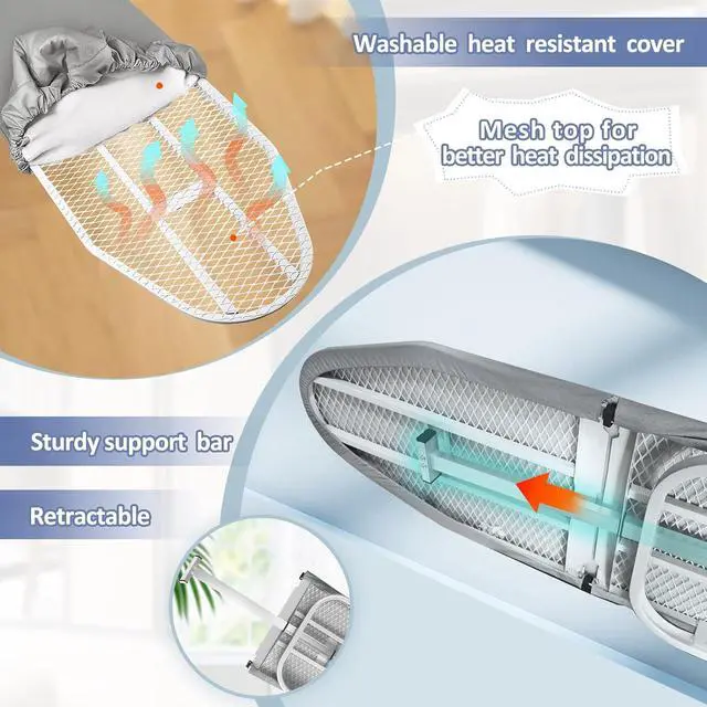 Durable and Removable Cotton Cover: Our ironing board comes with a heat-resistant cotton cover that is both durable and removable, ensuring long-lasting use and easy cleaning