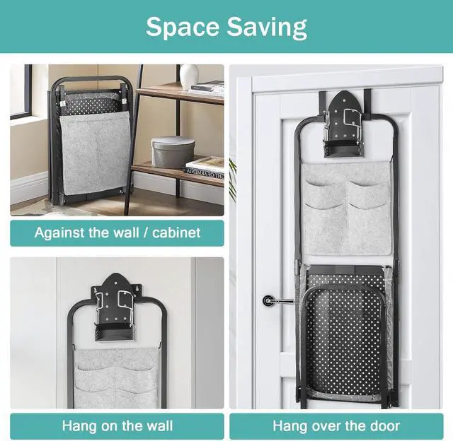 Space Saving Foldable Design: Engineered with a collapsible frame for effortless storage, this over the door ironing board folds to 2.76 inches thickness, hanging behind the door or on the wall. Perfect for small apartments or space, it maintains full functionality while keeping tidy